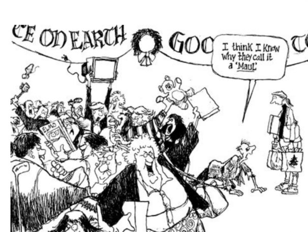 This past weekend I drove to the mall for holiday gifts. Entering TJ Maxx, I was flabbergasted by the towers of holiday merchandise, which spilled over into the narrow aisles, making for tricky navigation. Overwhelmed by this crass commercialism, I made a few purchases and raced to my car.