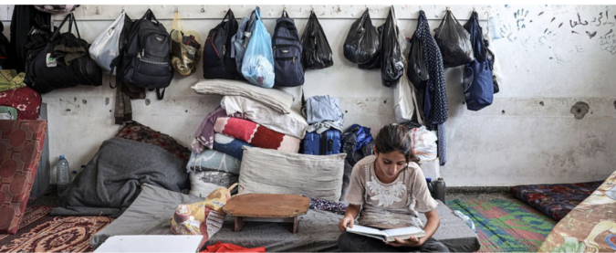 The incredible resilience of the Palestinians has been passed on to their children. Witness this image of a young girl in Gaza absorbed in her studies in a makeshift tented school. Other children use cinder blocks as desks.