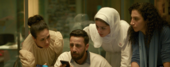 Actors portraying Red Cresent workers speaking to Hind